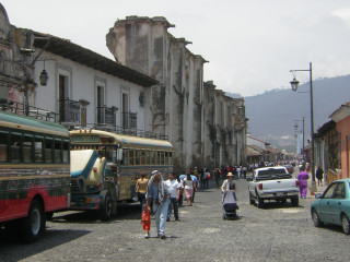 The bus Journey was 5 to 6 hour, but went pretty well, no major incidents, which was good, considering the stories you hear about Guatemalan roads! We only had one chicken on the bus but at least we can declare it was a proper Chicken bus now! We had to change in Guatemala City which I was a bit worried about, as the Fuente Del Norte bus stop is apparently the worst in town. It didn't seem half as bad as i had thought once we got there. The bus from there to Antigua was one of the nice colourful school bus types with Nigel Mansell at the wheel. you had to hold on for dear life as you ent around the corners and none of the locals found the journey quite as amusing as we did!!!