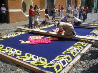 Antigua was heaving with people for Semana Santa, and had a really good atmosphere. We spent most of our time wandering around, wathcing the parades and looking at the carpets (Alfombras.)