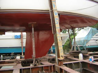 Right stop messing about and back to the work on the boat. Well we got the guys to do the final bit of painting on the antifouling.