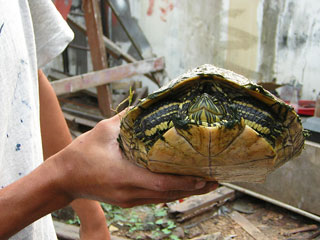Back in the boat yard, where the guys called us over to take a look at a large terrapin, we are not sure whether they just found him wandering about of whether they went out to catch him. We are a bit concerned that they had him for desayuno, as we saw him being taken into a shed, then heard a loud bang. Later on we saw an empty terrapin shell at the bottom of the river. We think poor tezza mush have come to a sticky end!!