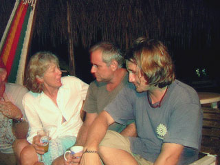 Ron getting very carried away using spoons, cups and glasses as a drum set, playing along with the local Garifuna band