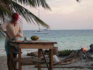 Me chopping up some coconut to go in the rum Click here to read the story