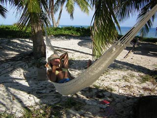 Me chilling out in the hammock with a rum on our own personal desert island