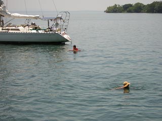 Helen Marie, the other boat with us at Dennys, and everyone taking a swim, the day after the Full Moon party