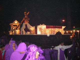The view to the court yard from our window Juts outside our room, the hotel was like a museum, with lots of bits of Guatemalan history everywhere. Balcony outside out room It also had its very own Parrot who liked to have a chat to everyone The parades that happened every day and night throughout the Easter time The band accompanying the floats Along with ridiculous amounts of incense! Along with the parades they make the most elaborate carpets on the street from maize, sawdust, flowers and fruits, which then get trampled on by the processions and are gone soon after they are finished. This was one of the cathedrals that has finally been left as a ruin after being destroyed 3 times by earthquakes. It has stood like this for the last 215 years. This archway is iconic of Guatemala and you will see images of it where ever you go. On a clear day you get a fantastic view of one the volcanoes straight through the middle, although all the while we were here it remained misty. These were the best pictures we managed to get of the volcanoes, due to the misty weather This was the Catedral De Santiago, in the central park Stuart grabbing something to eat at one of the local stalls
