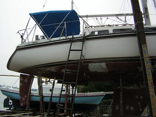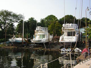 Photo Gallery ![]() The Boat Being Hauled Out Click here to read the story The first time the boat has moved since we have been here! This is Stu steering the boat as we motor over to Abels, the haul out place. Still on the way to Abels!