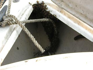 Smoking them out, well it doesn't get them out it apparently makes them a bit stoned and dozy. Scrapping the bees into a bag.