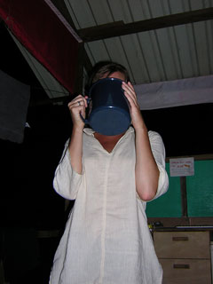 This is Stu filling up the holes with epoxy. Here is one of the crazy dinosaur lizards that you see all over the place. It is very funny to see them run as they flay there legs about all over the place! This is The hotel Rancho Escondido, owned by Jeff from the Crowbar our favorite drinking hole. Stuart after a hard days work, not the happiest looking of bunnies! It was probably taken after a number of rums too! Me with my big jug of water.
